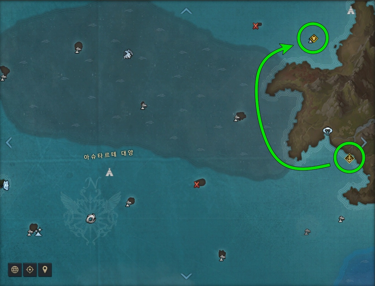 '그림자처럼 따라붙는' 퀘스트는 '사실 나 혼자만 아파했다' 퀘스트를 완료하고 1일 뒤(10/23 패치로 당일 바로 진행 가능) '한나의 명함' 아이템을 사용해 진행할 수 있습니다. 퀘스트 진행을 위해 그림자 달 시장 섬으로 이동합니다. 그림자 달 시장은 베른 남부에서 출항해 이동하면 가깝습니다. 가는길에 망자 해역이 있으니 참고하시고 모코코와 섬마 퀘스트는 아래 포스팅을 참고하세요.