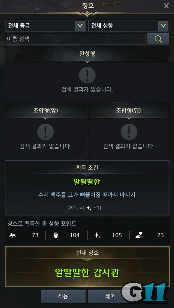 현재 착용하고 있는 칭호를 '알딸딸한 감사관'으로 변경하면 됩니다. 변경 후 기자에게 말을 걸면 아픈 건 누가 뭐래도 아프다 퀘스트를 진행할 수 있습니다. 칭호 알딸딸한 얻는법은 지스브로이에서 취기 버프 15 스택 시 얻을 수 있으며 칭호 감사관은 아르데타인 조사 협력 퀘스트를 완료하면 얻을 수 있습니다. 자세한 내용은 아래 링크를 참고하세요.
