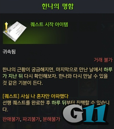 한나의 명함은 보상을 받은 후 하루 뒤에 사용해서 퀘스트를 진행할 수 있습니다.