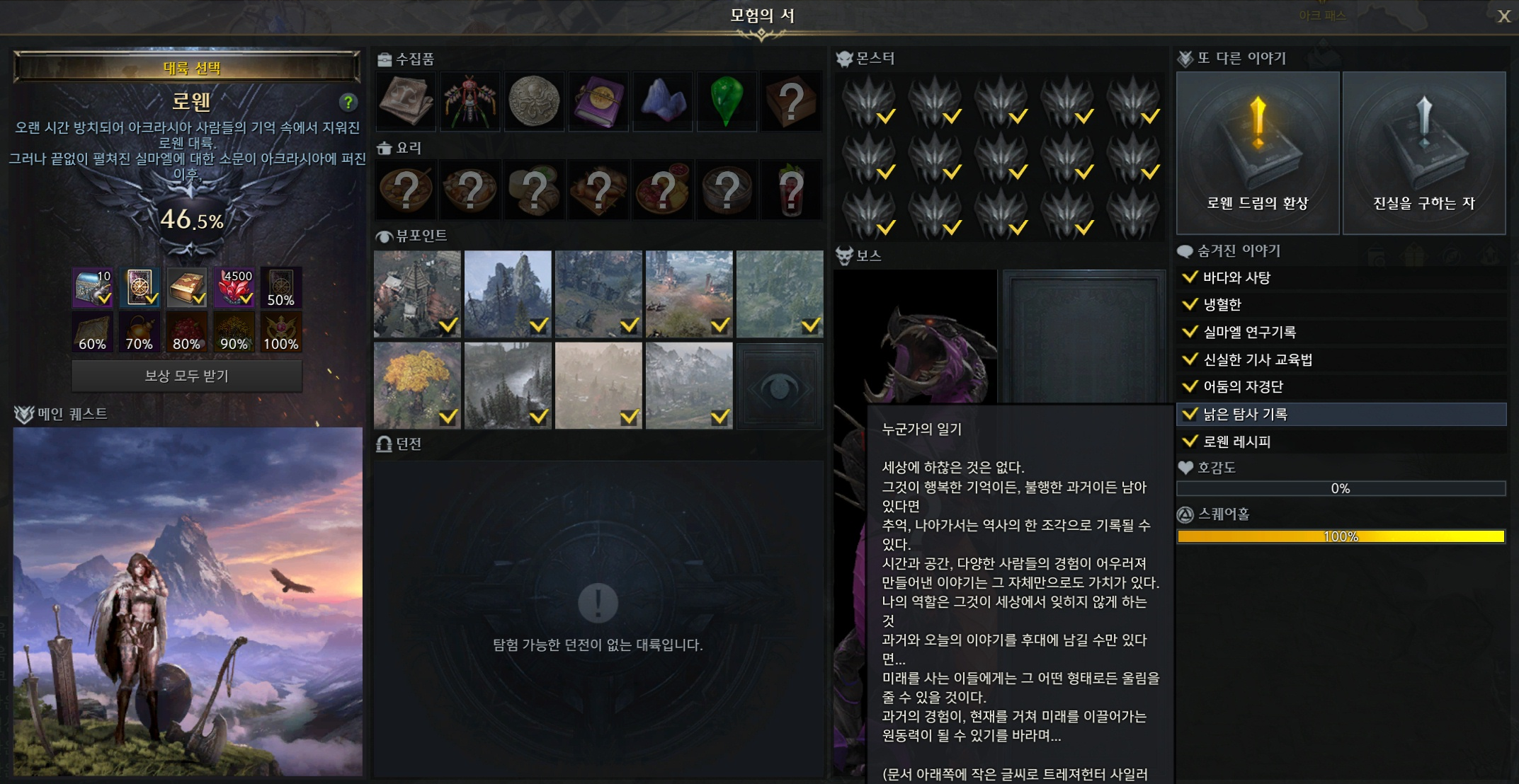 로스트아크 로웬 모험의서 정리 (시즌2)